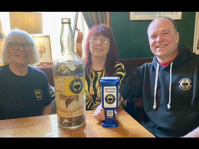 Big Thank You to Rosie and all the staff and customers of the Sulby Glen Hotel who have filled the 1 Gallon Whisky bottle. The collection of coins and notes will be counted and banked by Joey Dunlop Foundation Trustee, Gilly Keown, any guesses as to the total amount?